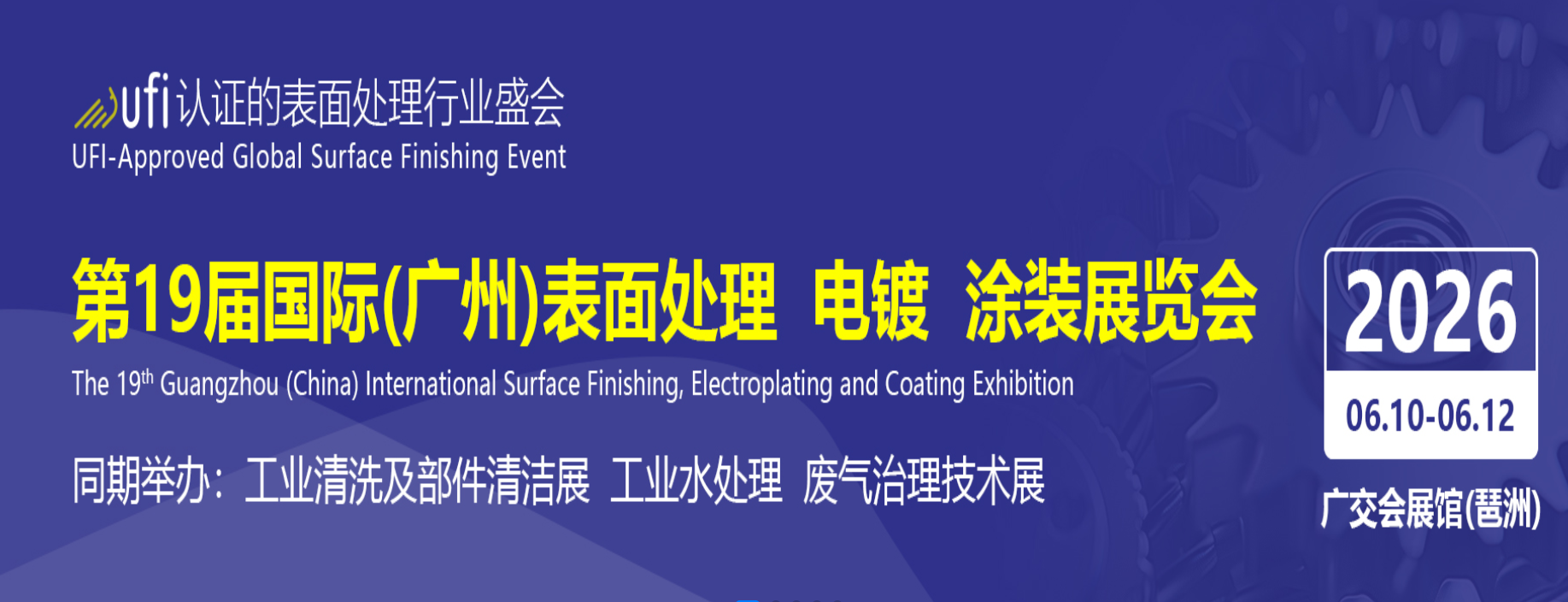 2026第19届国际(广州)表面处理 电镀 涂装展览会定于2026年6月10-12日月在广州·广交会展馆(琶洲)隆重举行,展会始终紧贴行业发展需求,引领表面处理技术创新及产业升级。本届展会将继续加入工业涂料、粉末涂料、智能制造、工业清洗及部件清洁、环保及安全等板块,汇聚行业精英、企业高管、技术骨干等共同探讨行业热点与难点,并将继续通过广泛宣传推广、一对一观众组织等方式组织电镀厂、涂料涂装厂、表面处理园区、汽车及零部件、五金、塑胶、卫浴、铝型材、家电、灯饰、通讯、数码、IT等领域的表面处理用户前来参观采购。
